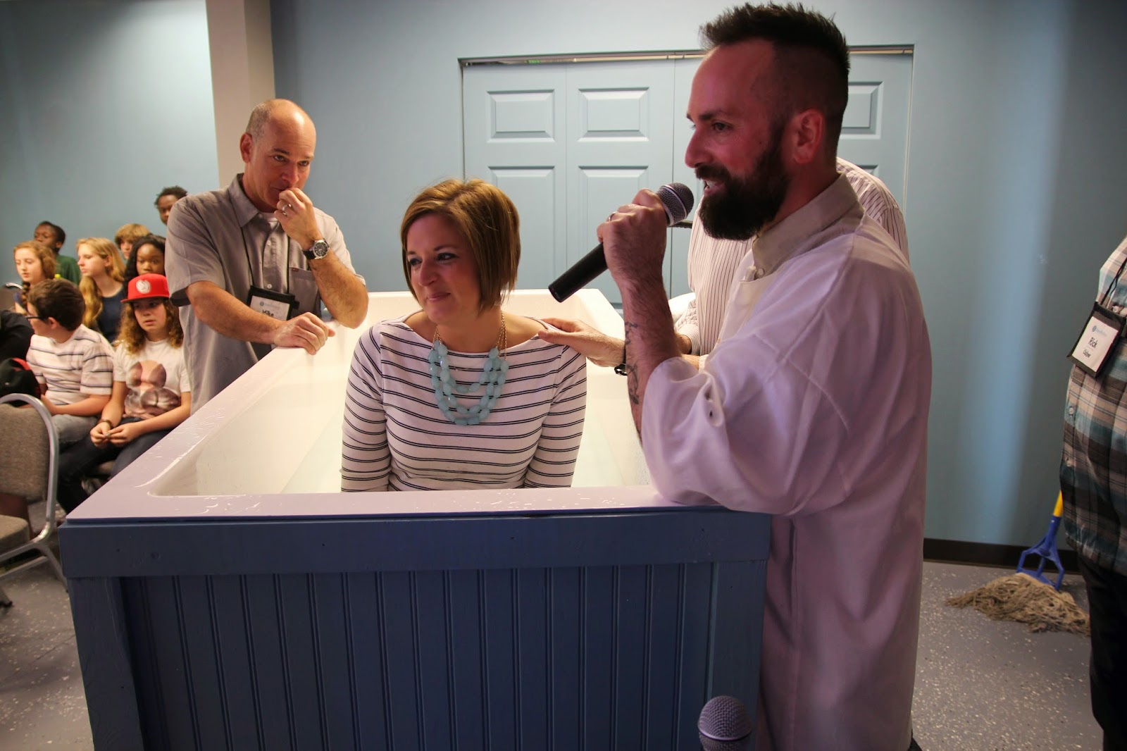 What a whirlwind week it has been and it's not even over yet! People have come, quite literally, out of the woodwork since my baptism -- telling me they have been praying for me all along. People I barely know. People I DON'T know! Humbled. People have been messaging me on facebook, sharing my blog, telling my story. They have told me that my words inspire them. That my story has touched them. I've received emails from people I haven't heard from in years. They are thanking me for sharing my story. Blessed. My wonderful friend Andy Rampulla , who happens to be Pastor Mark's dad, (and therefore, Marlee's grandfather) sent me all of the photos he took on Sunday. I wanted to share this one since it was so critical to my story. Remember I said that Marlee was watching? That Marlee brought me to this place of salvation and she was right there beside me, cheering me on? Nevermind my Alice Cooper makeup. I love the way Mark is...